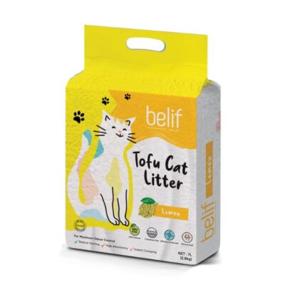 חול חתולים טופו belif lemon חול אקולוגי מתגבש עשוי משבבי טופו טבעיים, ידידותיים לסביבה.