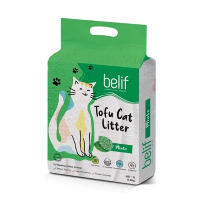 חול חתולים טופו belif mints חול אקולוגי מתגבש עשוי משבבי טופו טבעיים, ידידותיים לסביבה.