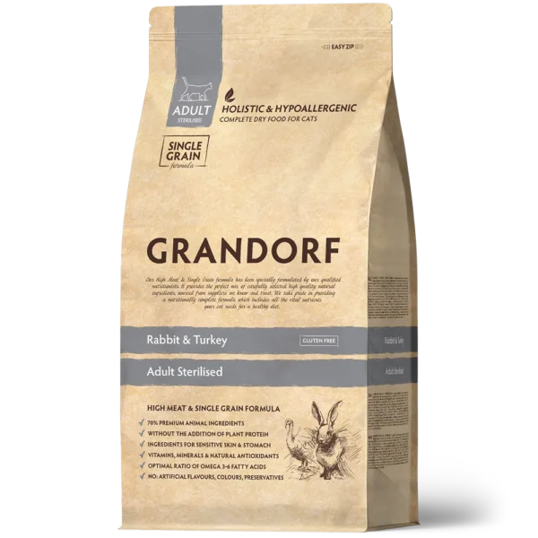 גרנדורף מזון יבש מארנבת והודו לחתול מסורס 2קג