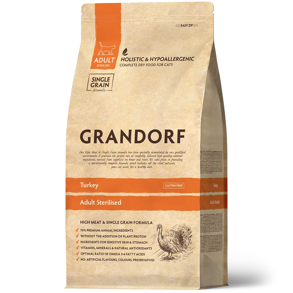 גרנדורף מזון יבש הודו לחתול מסורס 2קג