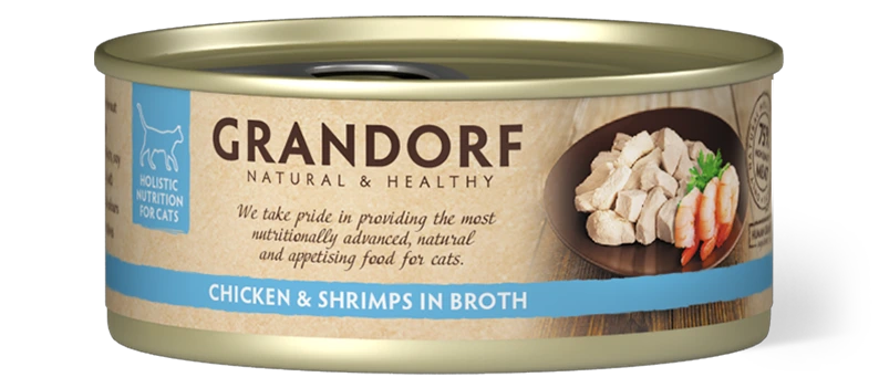 Премиальный консервированный корм Grandorf предлагает натуральное и роскошное питание, разработанное с учетом потребностей взрослых кошек, в том числе кошек с чувствительным пищеварением или склонностью к аллергии.
